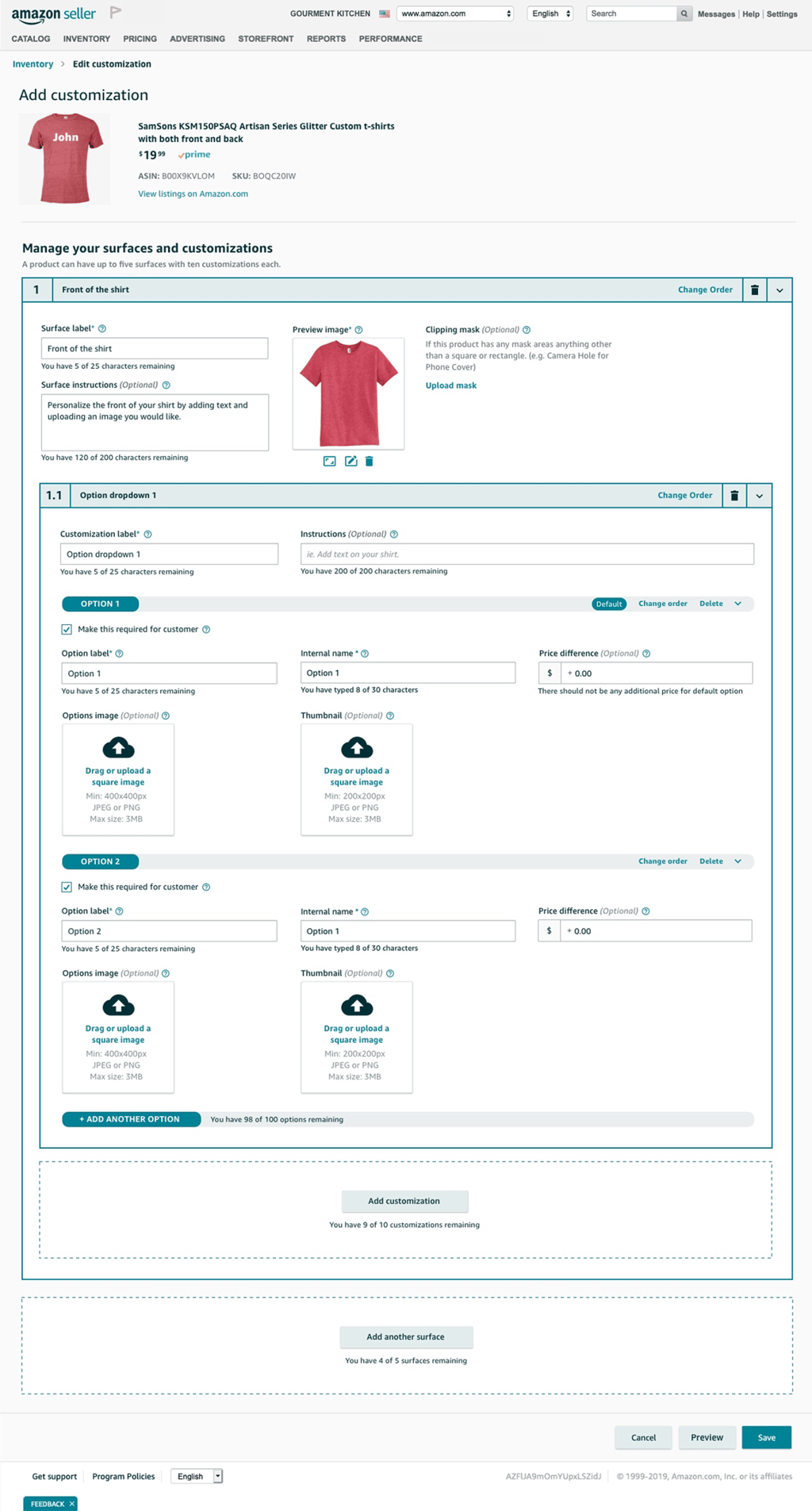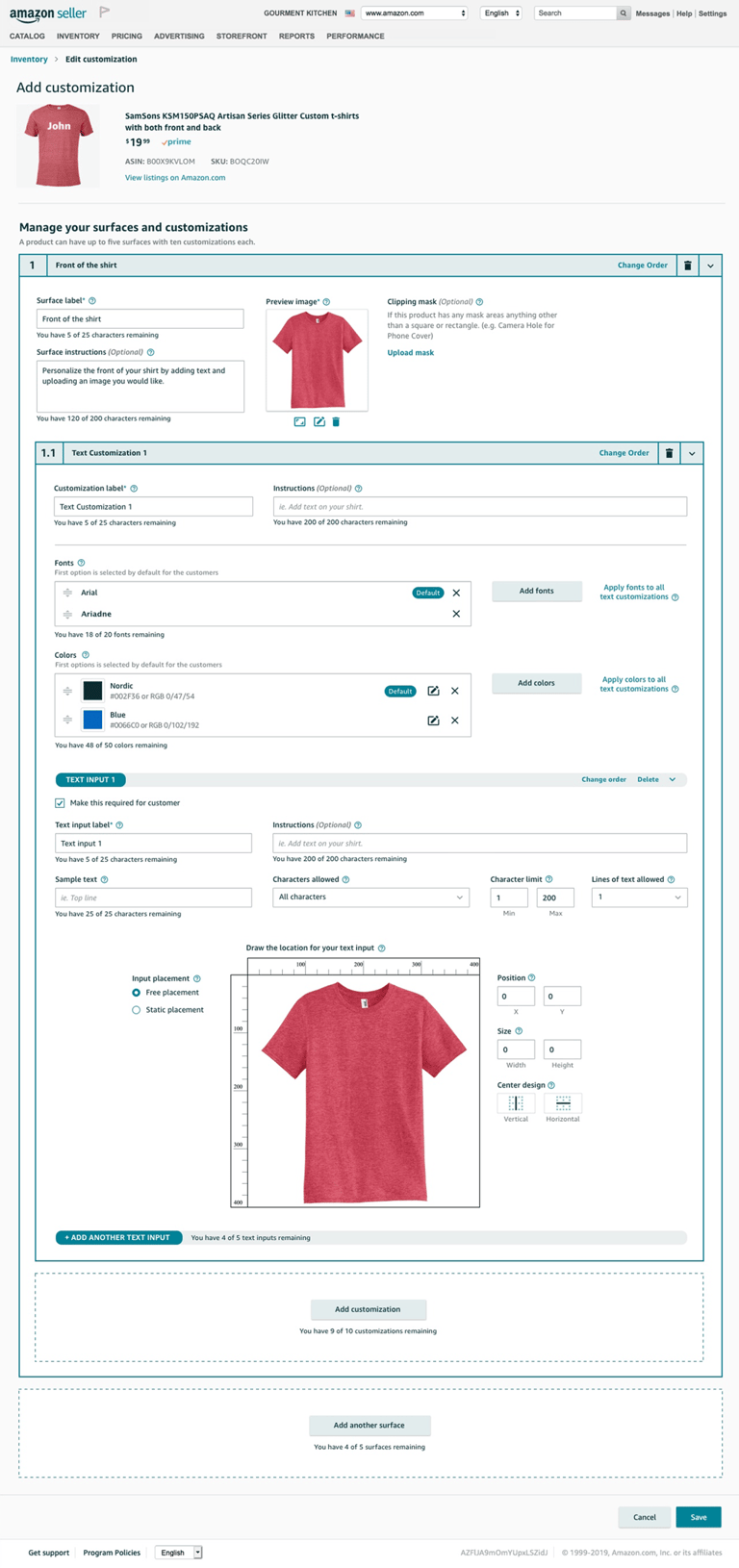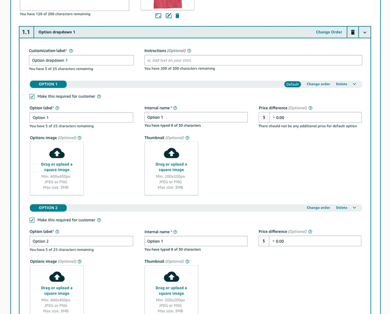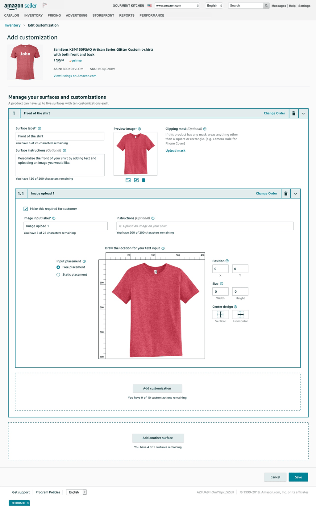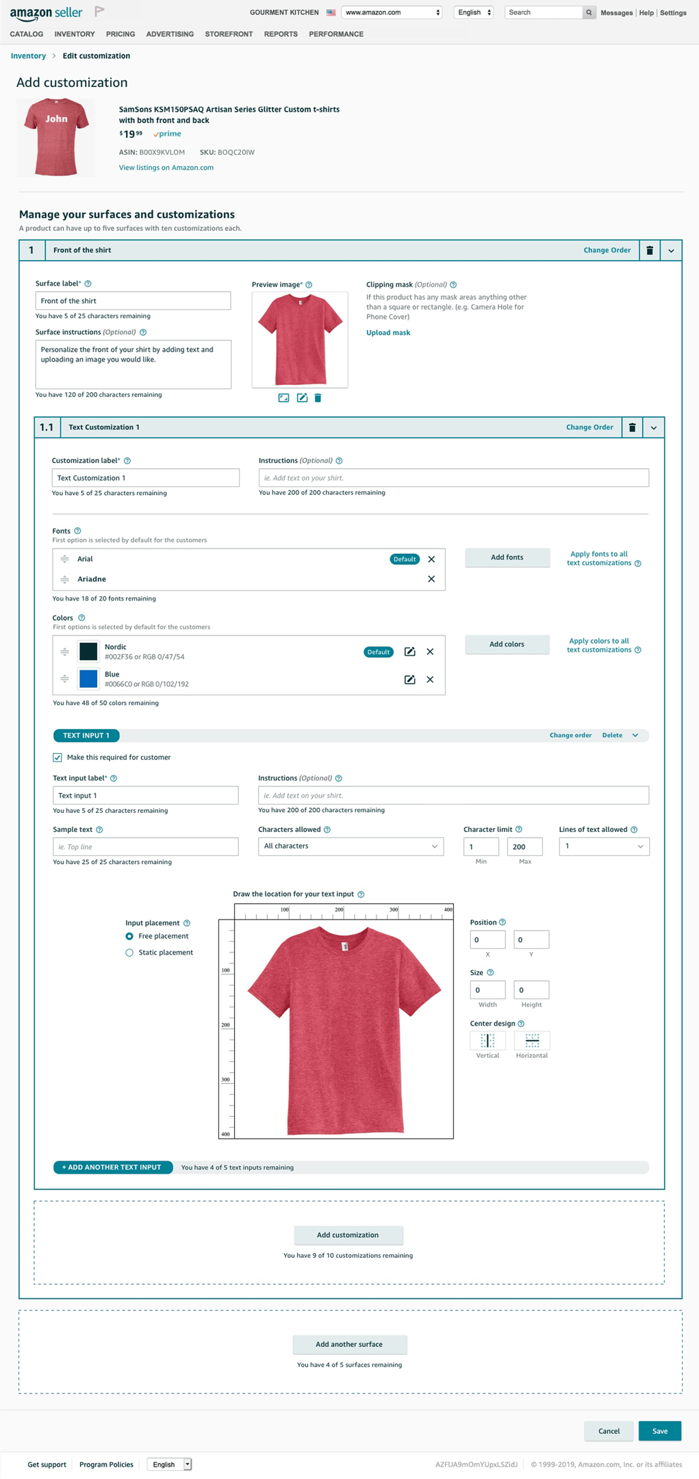 A dedicated, visual interface in Seller Central that allows merchants to define complex product rules, pricing tiers, and inventory logic for customized items, ensuring that the buyer's choices translate perfectly into a ready-for-fulfillment order.