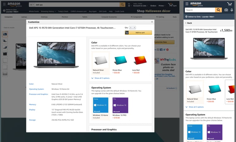 To maximize user familiarity and trust, we leveraged the existing Amazon Product Detail Page framework, seamlessly integrating the customization builder directly into the familiar interface.